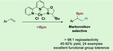 3. Cobalt-catalysed Markovnikov selective hydroboration of vinylarenes. Jingying Peng, Jamie H. Docherty, Andrew P. Dominey and Stephen P. Thomas, Chem. Commun. 2017, 53, 4726–4729.